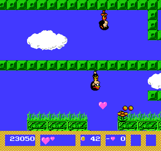 El jugador se verá obligado a presionar todo el tiempo el botón SELECT, que teletransporta al ayudante de vuelta al jugador y resulta en un verdadero salvador de vidas. Hay muy pocas pantallas en donde el ayudante puede servir de algo, como las que se dividen a la mitad en dos caminos, cada uno con ítems, en estas situaciones el jugador puede hacer que el jugador y el ayudante vayan separados y en paralelo por los distintos caminos para no perderse ítems.