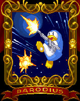 - Otomedius (2007 - Xbox 360): El ejército de pinguinos enemigos de Parodius regresa en este juego. A lo largo de los niveles aparecen gran cantidad de estos pingüinos azules atacando el jugador.