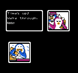 En Penguin Adventure, Penta corre desesperadamente para salvar a Penguette.