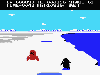 - Antarctic Adventure (1983 - MSX, NES, GB): Un clásico juego de velocidad en donde Penta, aquí llamado Penguin, debe correr a lo largo de todas las regiones de la Antártida. En cada nivel debe evadir huecos y leones marinos que tratan de retrasarlo, ya que hay un límite de tiempo para llegar a la meta.[4]